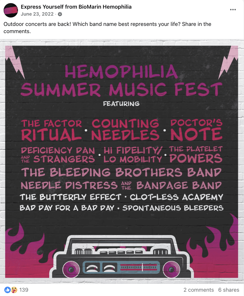 Relaunching BioMarin's Facebook page for Hemophilia A